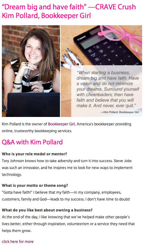 "Kim Cash brings a refreshing current of ethical standards to her BookkeeperGirl clients, and for anyone fortunate enough to work with her on a more personal level. She is, above all, conscientious, courteous, and fair in her dealings. You will be most impressed with her commitment to improving the quality of life in her community, through her talent for building strong relationships in business."